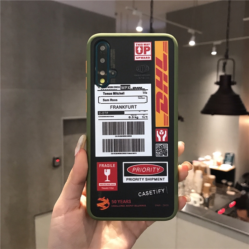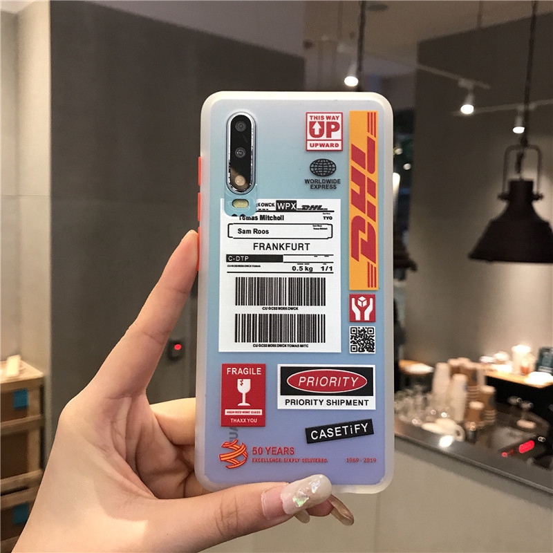 for iphone samsung xiaomi redmi huawei honor case fashion dhl express label bar code pattern silicone phone case cover