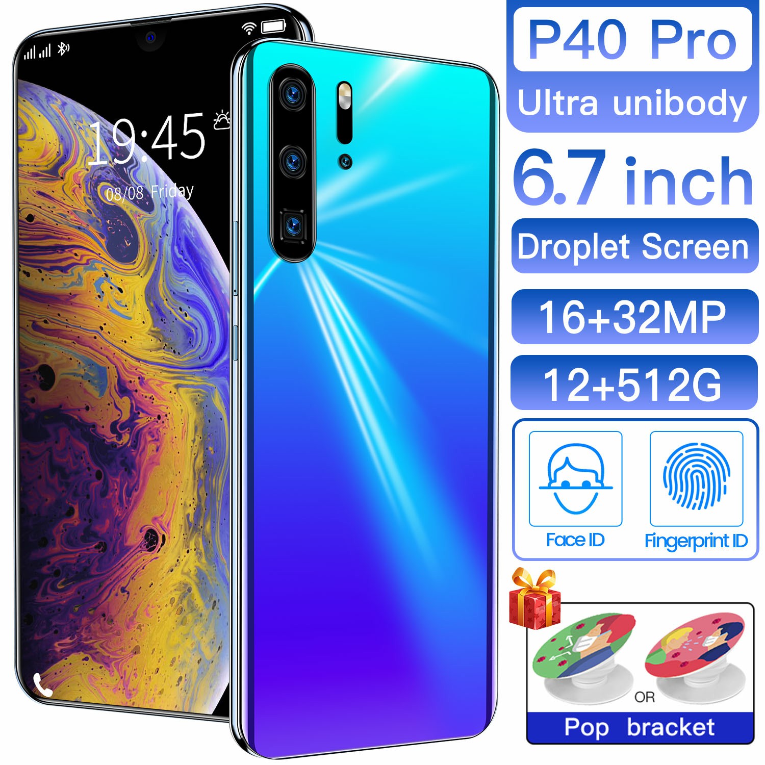 huawei original screen new p40pro smartphone 6 7 inch android phone ram 12g rom 512g 16 32mp fingerprint unlock face id 5600mah battery