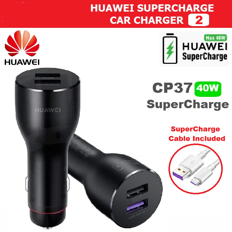 original huawei cp37 supercharge car charger 2 40w max 10v 4a dual usb 5a type c cable included