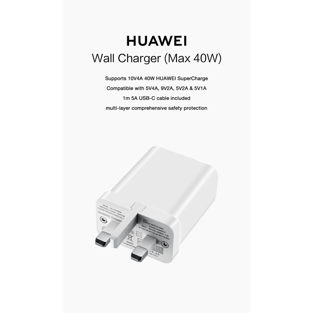 official huawei cp84 40w uk supercharge type c mains charger white retail pack