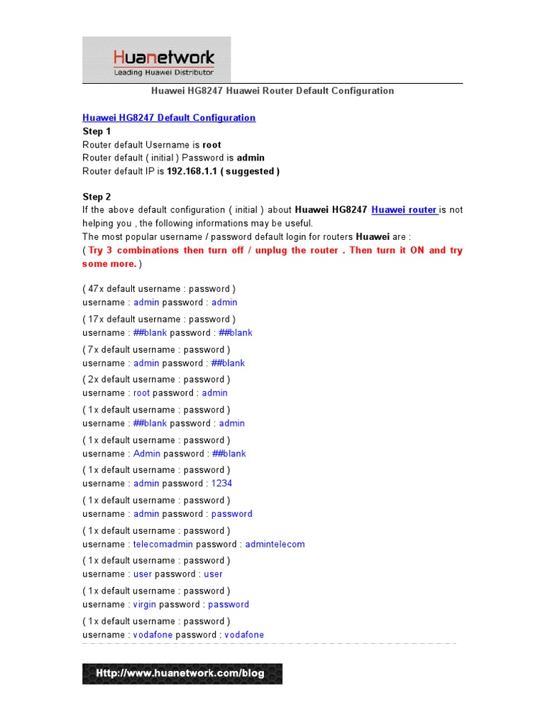 usernames and passwords for huawei routers