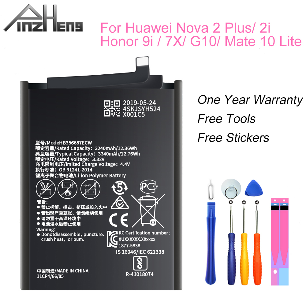 2021huawei 3340mah hb356687ecw battery for huawei nova 2 plus nova 2i honor 9i huawei g10 mate 10 lite p30 lite huawei honor 7x