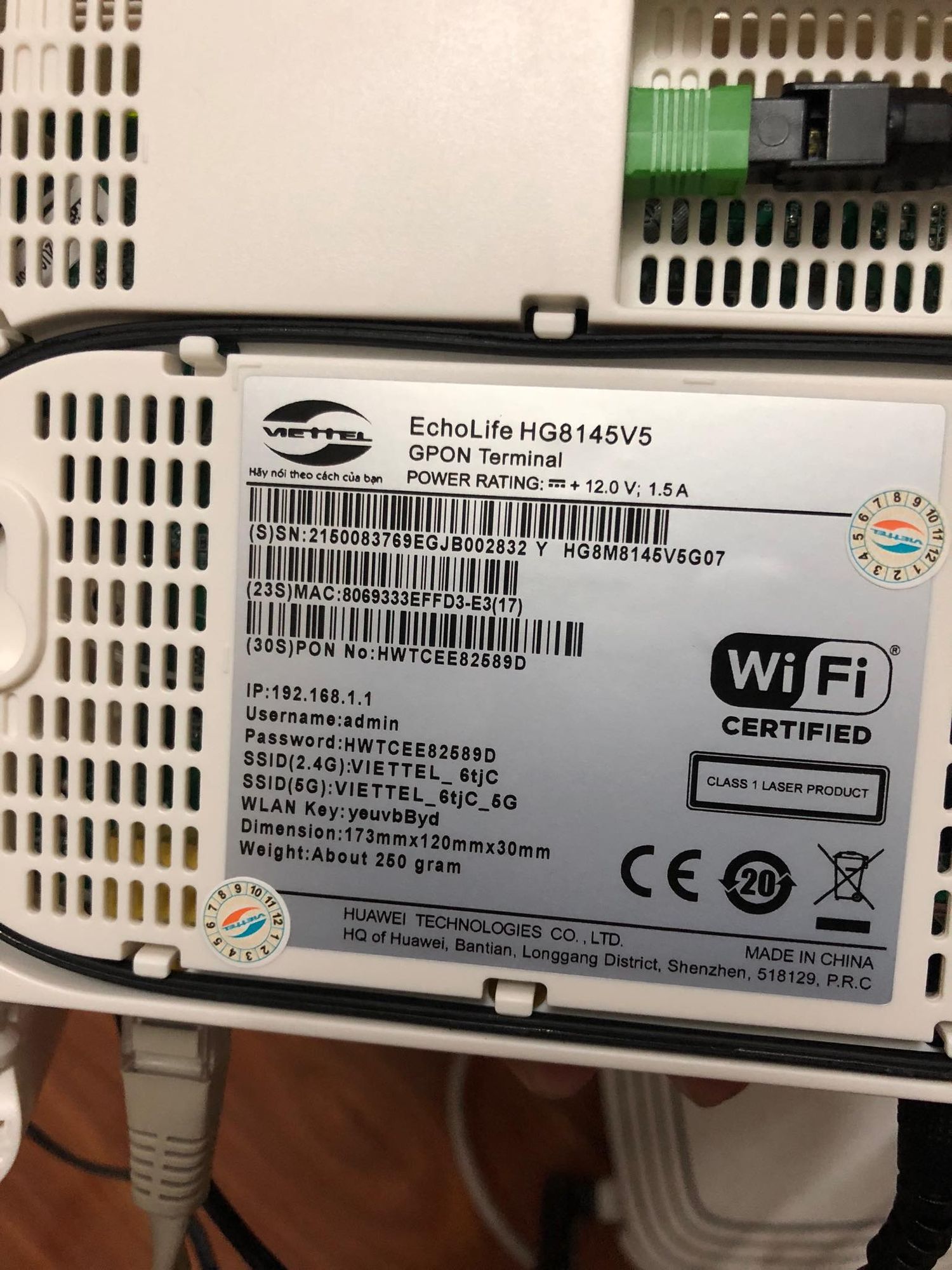 username and password on the huawei gpon ont netvn