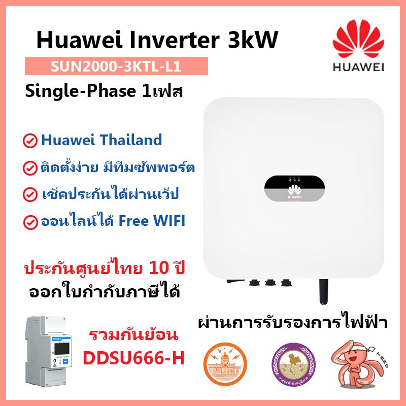 พร อมส ง huawei inverter 3 5kw 1phase อ นเวอเตอร 1เฟส ออนก ต on grid grid tie ร บประก นศ นย ไทย10ป รองร บแบตเตอร
