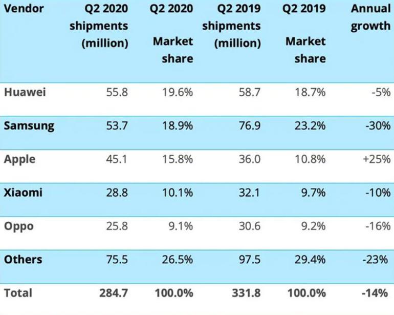 2020 de akilli telefon satislari ne