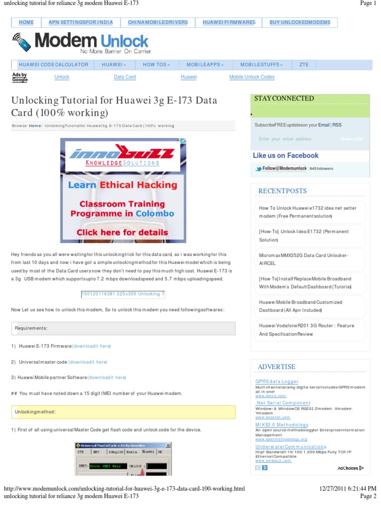 step by step to unlock huawei e173 modem