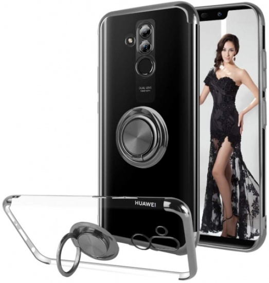 huawei mate 20 lite kilif renkli koseli yuzuklu standli lazer seffaf esnek silikon siyah