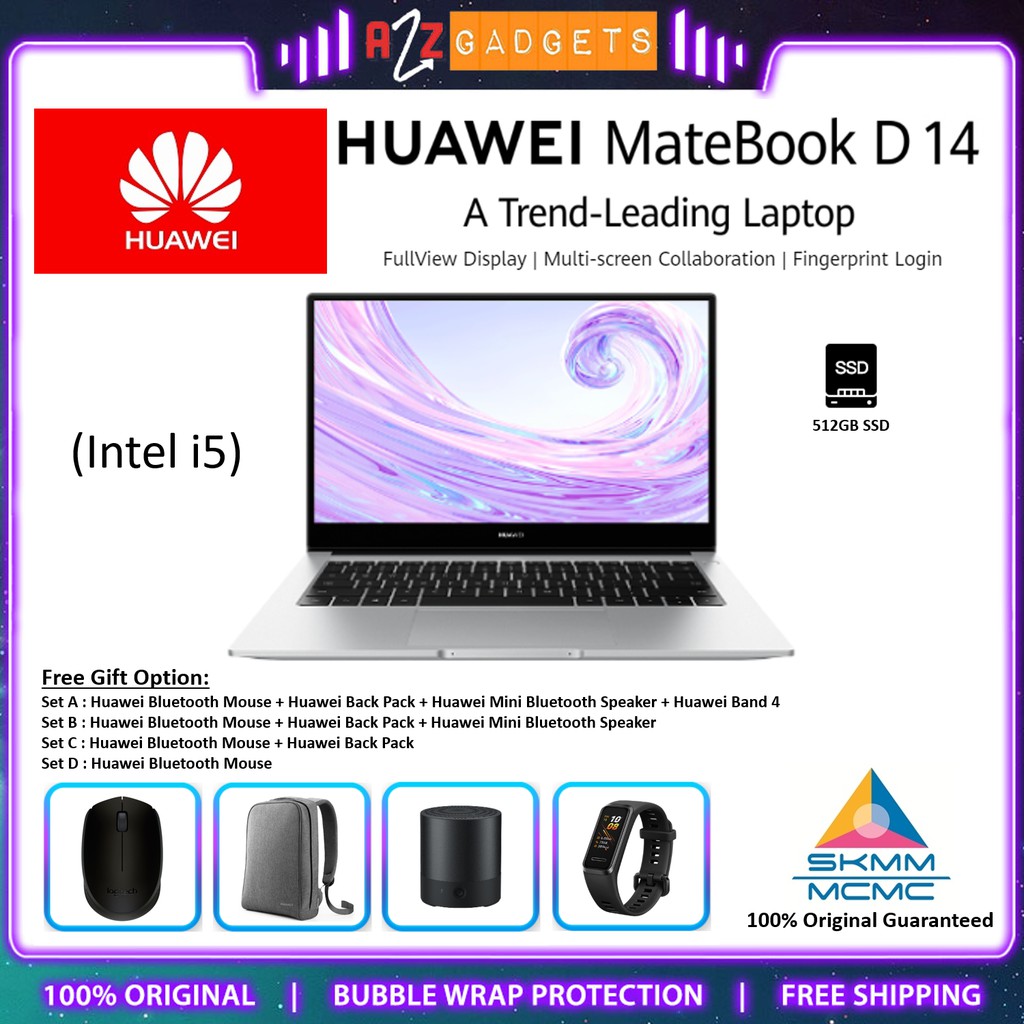 huawei matebook d 14 d14 intel core i5 amd r7 15 6 screen size 8gb ram 512gb ssd original malaysia set