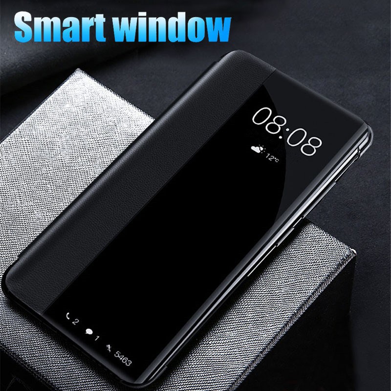 fashion smart window view flip case huawei p40 pro plus p40 lite p30 p30 pro p30 lite back cover matte leather cover hard casing shockproof