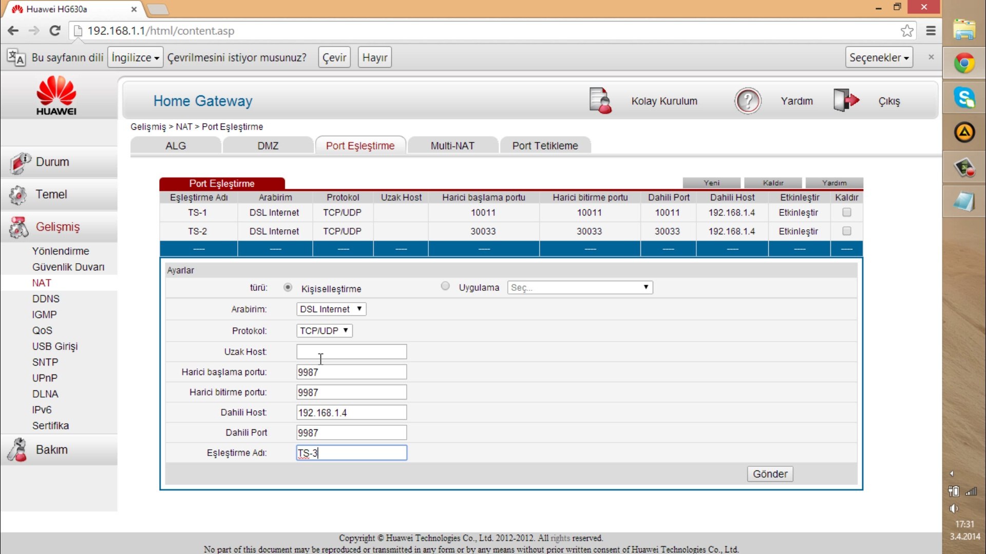 huawei hg658 v2 port acma nasil yapilir