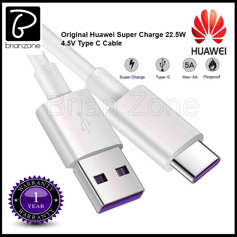 huawei 4 5v5a supercharge adapter with usb c data cable white