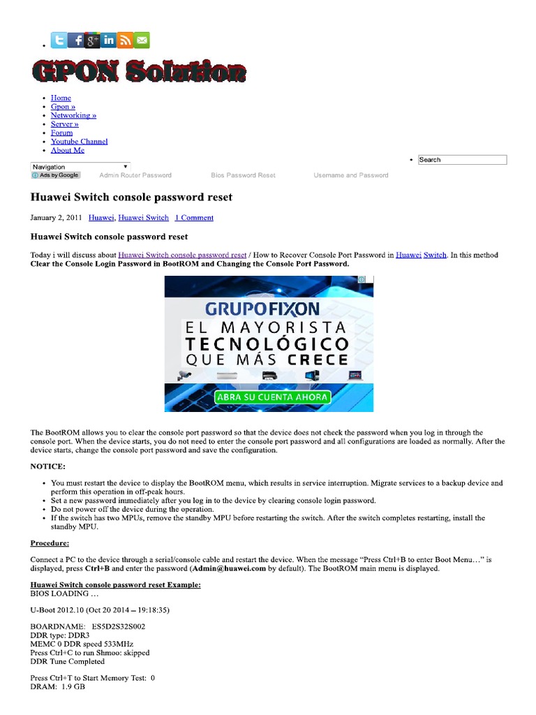 huawei hg8245 default password gpon solution