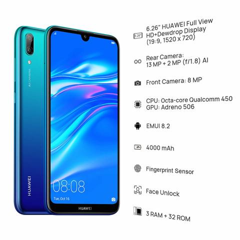huawei y7 2019 32gb 3gb 6 26 dewdrop display 4000 mah battery 4g lte gsm dual sim factory unlocked smartphone dub lx3 international version